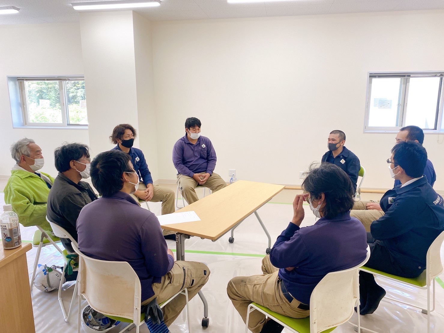 全体でグループでディスカッションを行い、今後労働災害が起きないように対策を練り、全体で共有致しました。