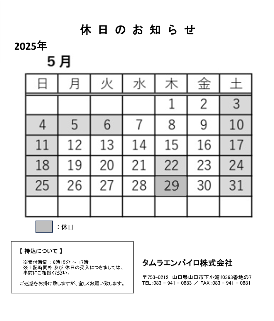 22日、29日は社内行事及び場内での工事の実施に伴い、休業とさせて頂きます。