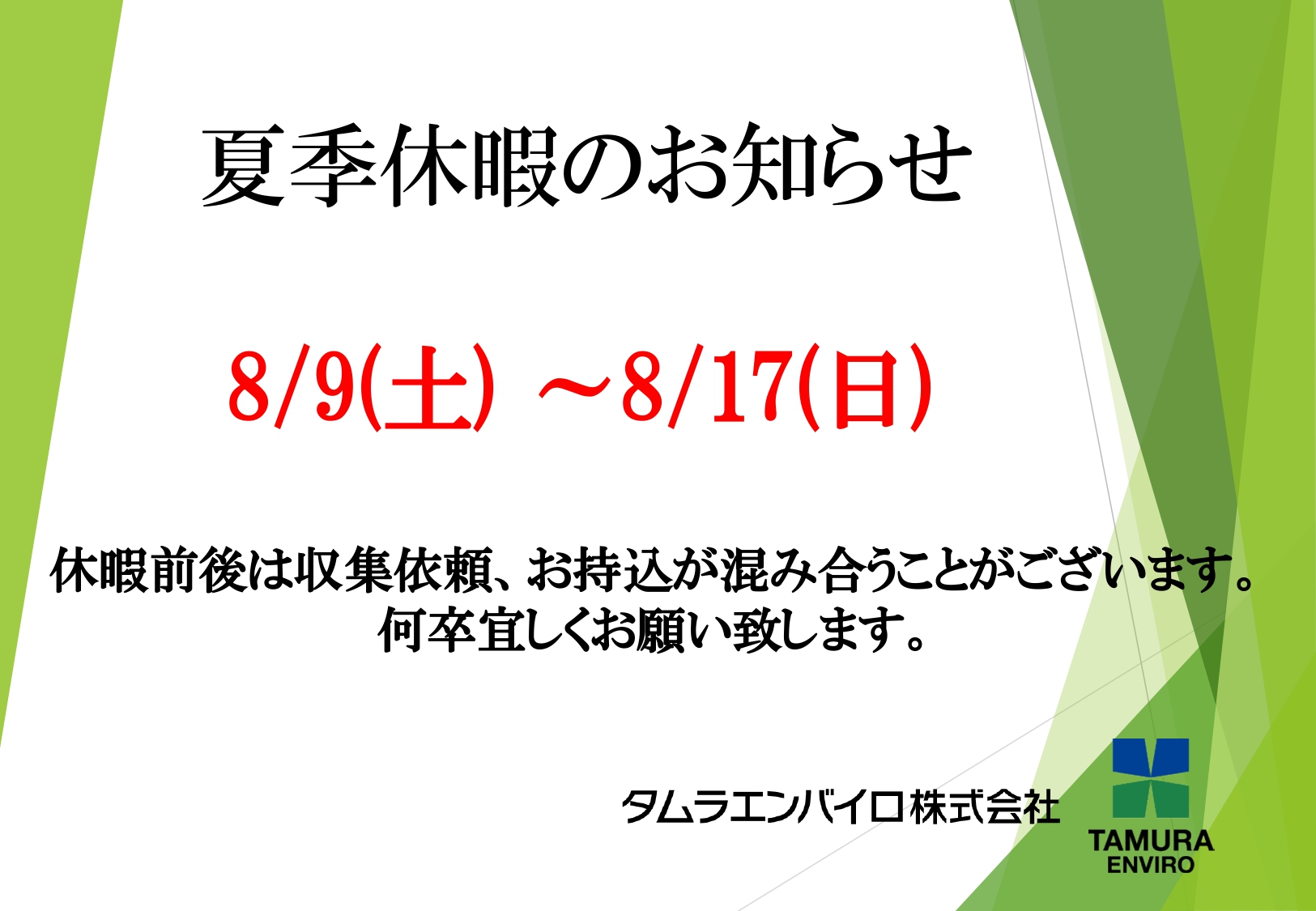 8月9日(土)~8/17(日)は夏季休暇となります。